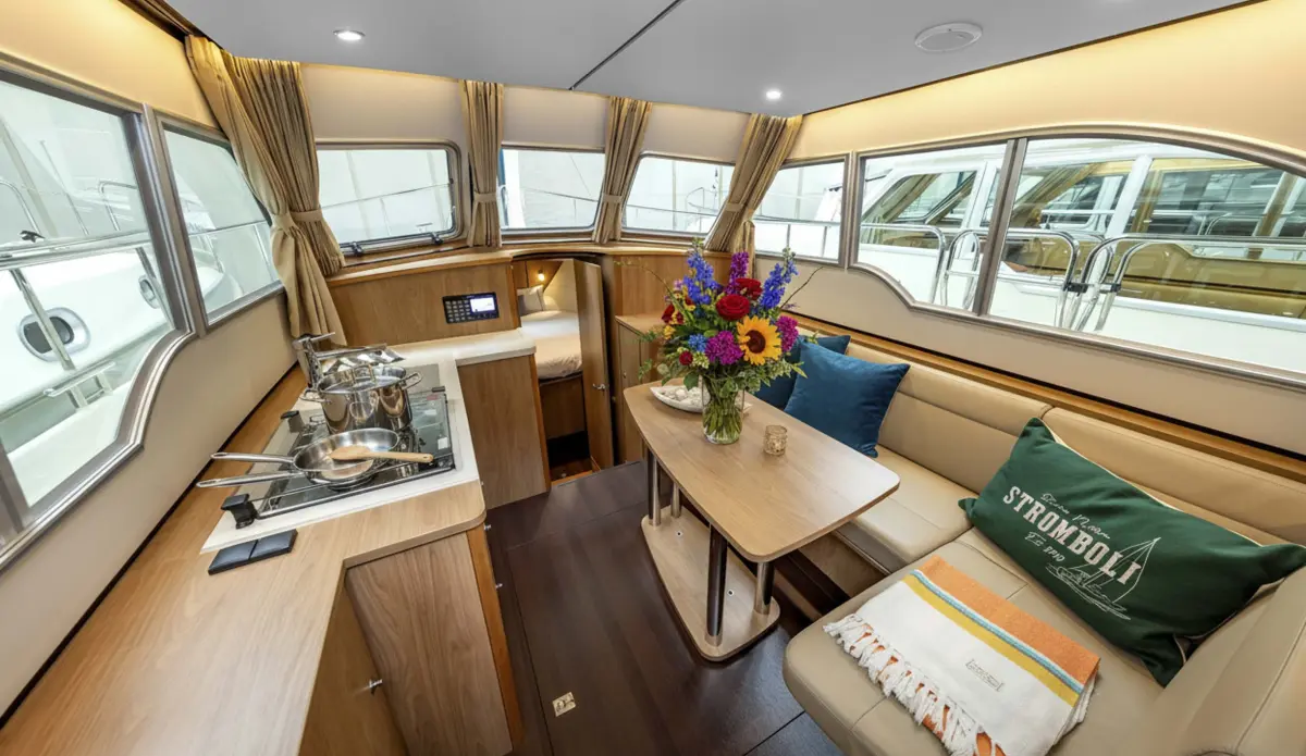 Bei der Gestaltung des Innenraums standen Komfort und Benutzerfreundlichkeit im Vordergrund. Der gemütliche Salon, die voll ausgestattete Kompaktküche und die geräumigen Schlafkabinen bieten ein Gefühl von Zuhause, wo immer Sie segeln.