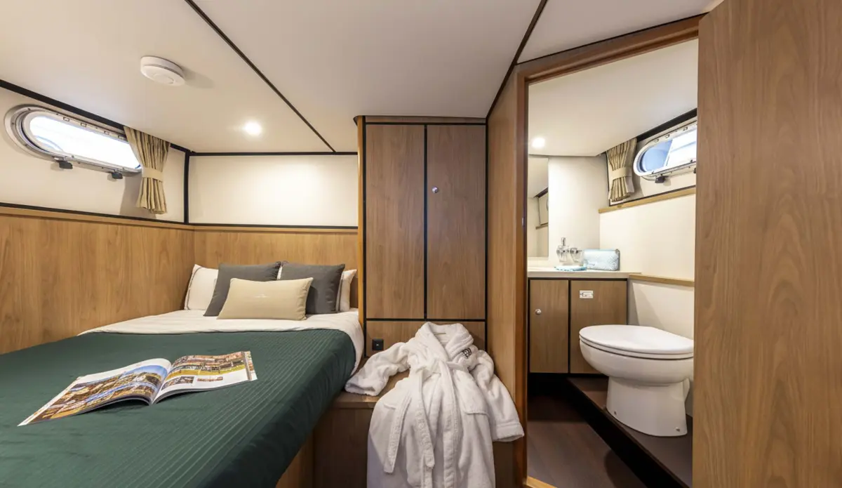 Het interieur is ontworpen met comfort en gebruiksgemak als prioriteit. De gezellige salon, volledig uitgeruste compacte keuken en ruime slaapvertrekken bieden een thuisgevoel, waar u ook vaart.