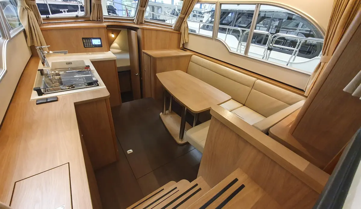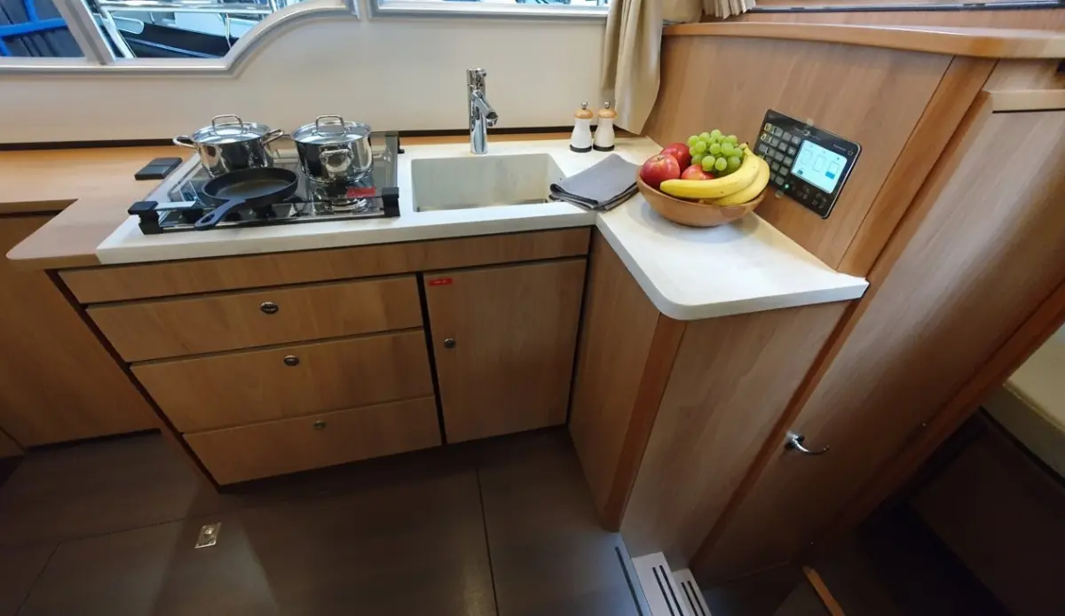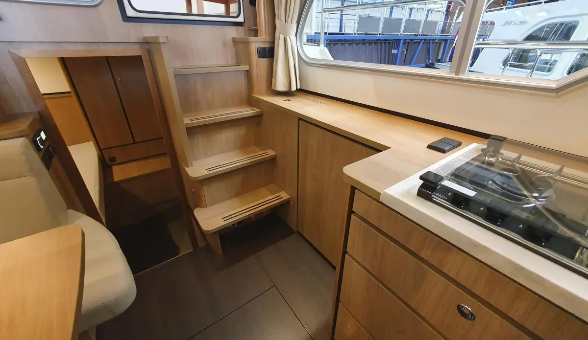 The interior is designed with comfort and ease of use as a priority. The cosy saloon, fully equipped compact kitchen and spacious sleeping quarters offer a feeling of home wherever you sail.