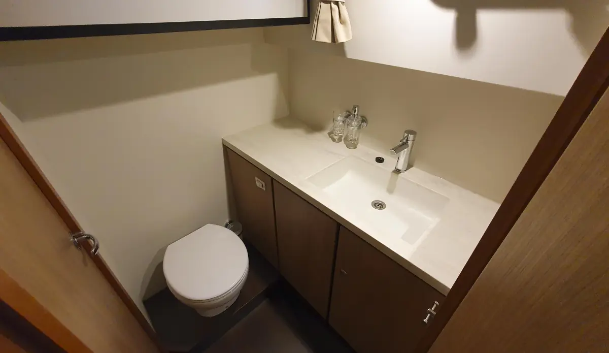 elektrisch toilet in achterkajuit boordwatergespoeld