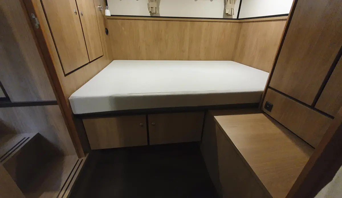 Het interieur is ontworpen met comfort en gebruiksgemak als prioriteit. De gezellige salon, volledig uitgeruste compacte keuken en ruime slaapvertrekken bieden een thuisgevoel, waar u ook vaart.