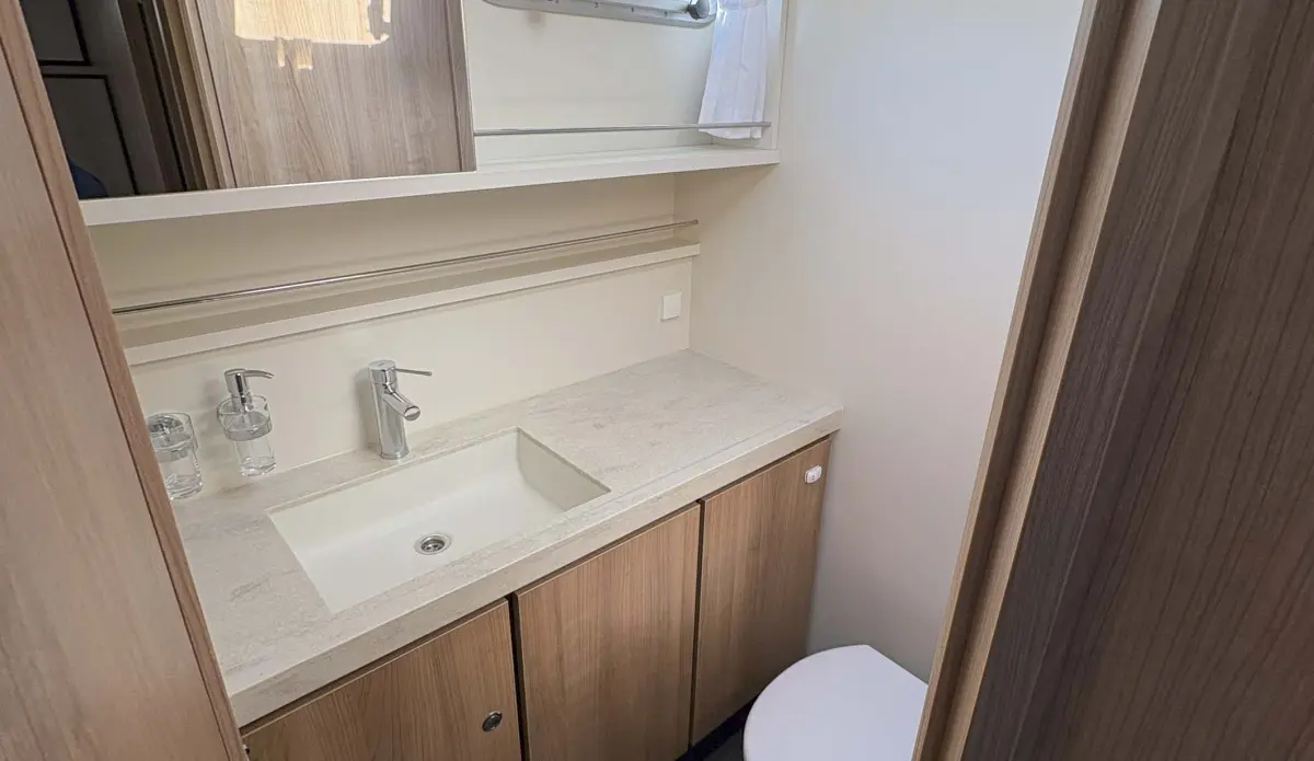 • elektrische Toilette im Vorderkabine Frishwassergespült
