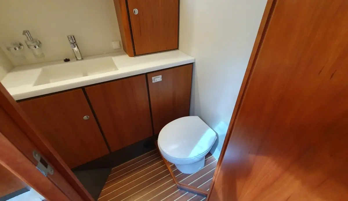 • elektrisch toilet in voorkajuit boordwatergespoeld (2x)