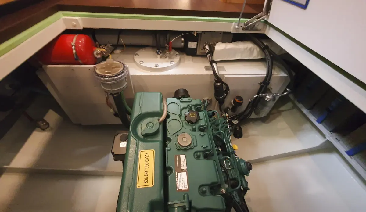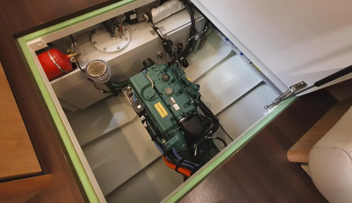 Dankzij de efficiënte motor heeft dit jacht een laag brandstofverbruik, afhankelijk van de vaaromstandigheden.