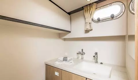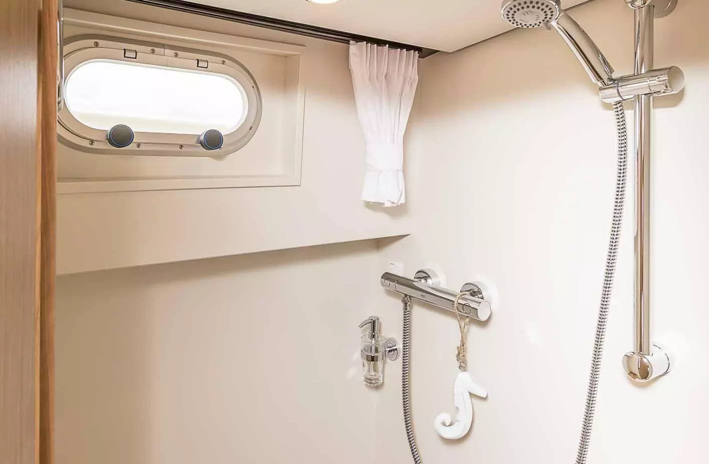 The Sedan version has only a fore cabin with sleeping space for two people, various cupboards, a toilet and separate shower. In both the AC and the Sedan, the Easy Sleep Convert System makes it possible to create two extra sleeping berths by converting the saloon bench into a double bed.