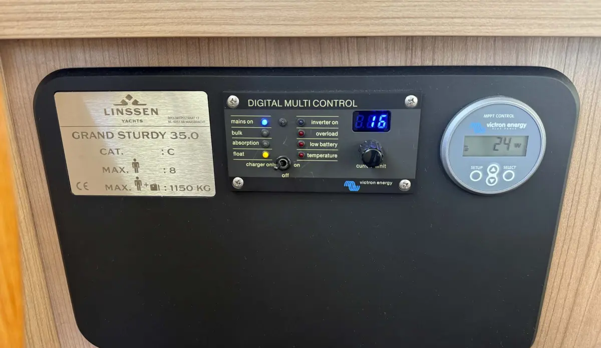 - Automatic battery charger/inverter type Victron Multiplus Compact 12/1600-70 (70A/1600W) with remote control panel. Peak power 3000W.