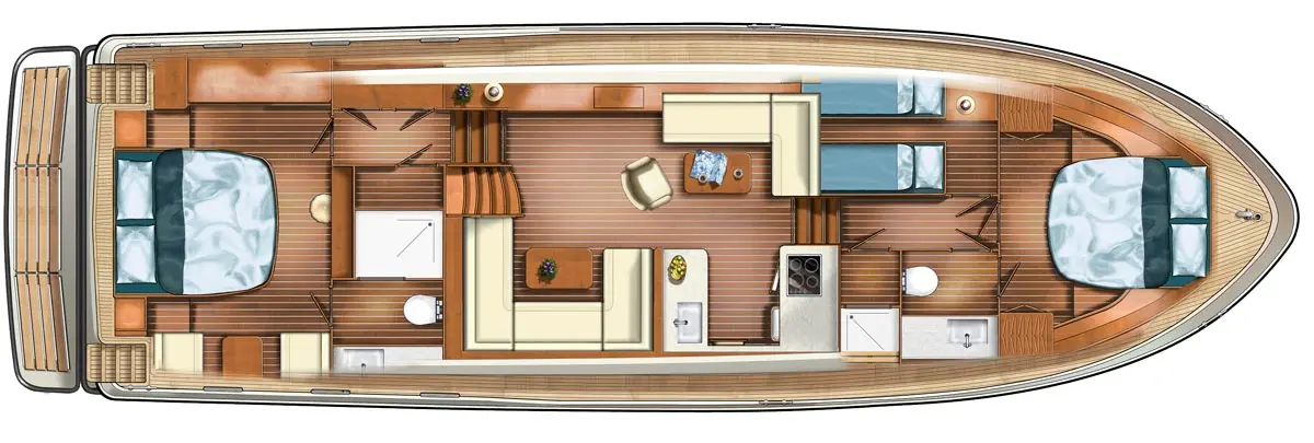 • indirecte LED-verlichting in voorkajuit achterkajuit Salon Natte cel