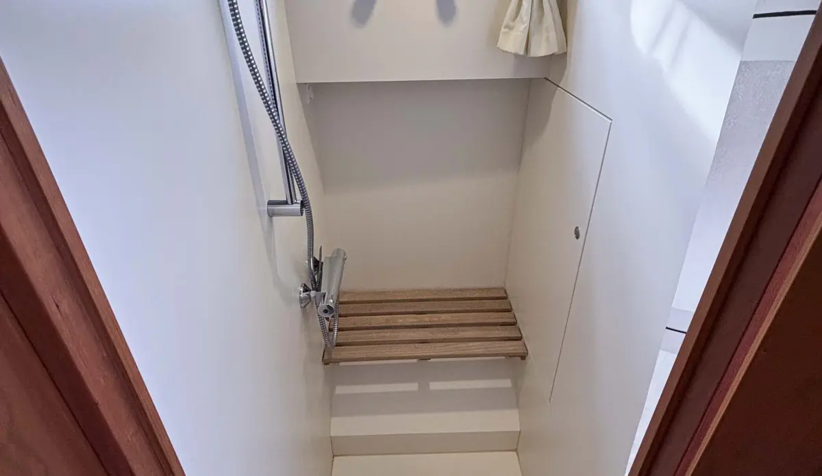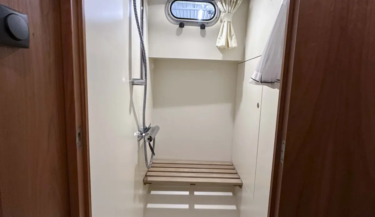 - Kühlschrank 110 Ltr., Kochplatte mit 4 zones Induktion, Arbeitsfläche in der Pantry ausgefürth mit Corian, Geschirrspüler, Waschmaschine mit Trocknungsfunktion, Mikrowelle mit Backofen-funktion und Grill-funktion, Dusche im Vorderkabine, elektrische Toilette im Vorderkabine Frishwassergespült, Handtuchheizkörper im Nasszelle Vorderkabine, Heizung durch Luft, Klimaanlage Vorder- und Seitenkabine Salon, FM-Radio mit CD-Spieler mit USB-Spieler, Fernseher im Salon, automatische Feuerlöschanlage im Maschinenraum