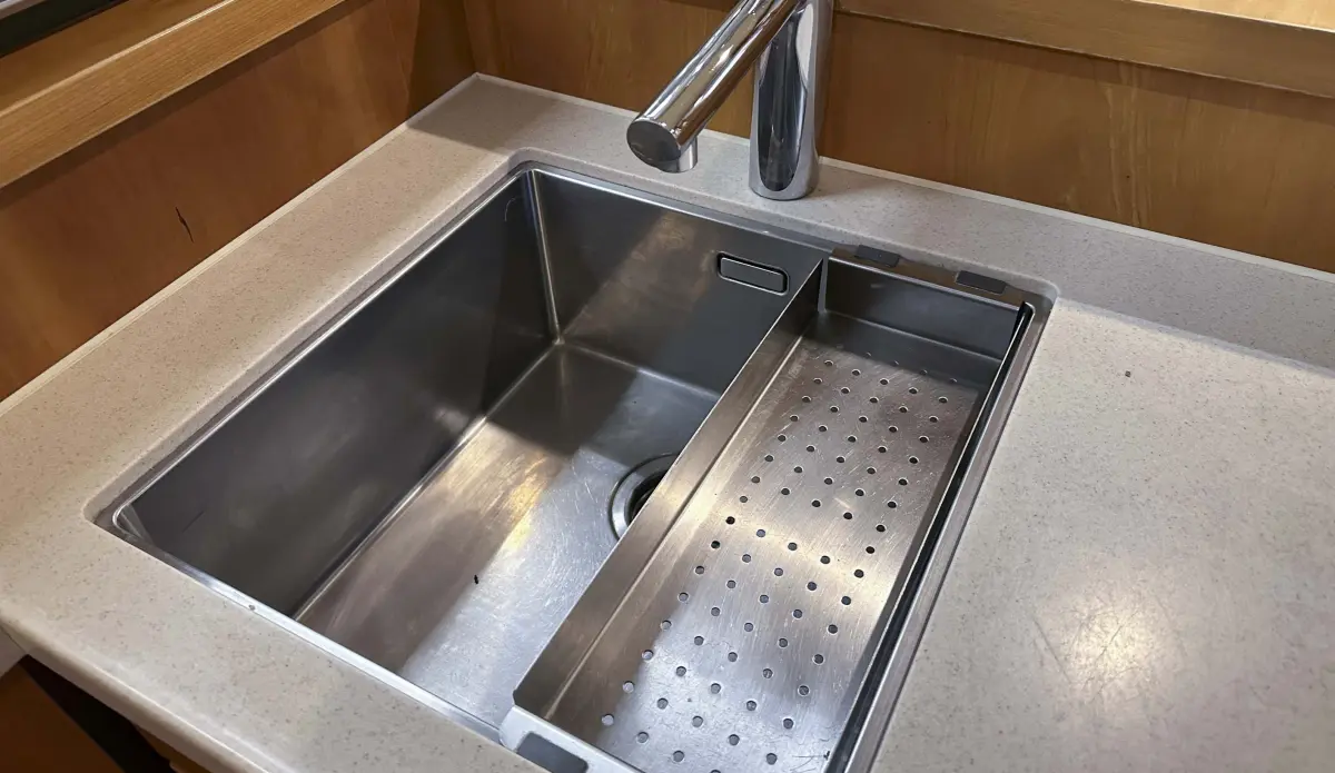 - koelkast 110 ltr., kooktoestel 4 zones inductie, keukenblad uitgevoerd in Corian, vaatwasmachine, wasmachine met droogfunctie, magnetron met ovenfunctie en grillfunctie, douche in voorkajuit, elektrisch toilet in voorkajuit boordwatergespoeld, handdoekradiator in natte ruimte voorkajuit, verwarming door middel van lucht, airconditioning voorkajuit en middencabine salon, FM-radio met cd met usb, televisie in salon, automatisch brandblussysteem in machinekamer